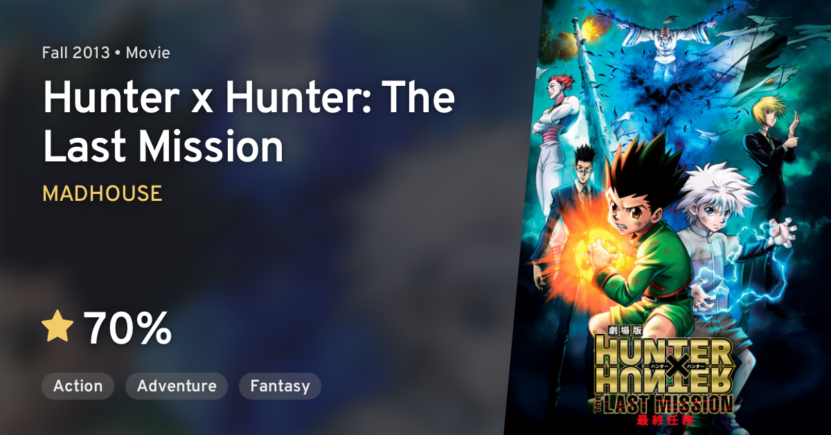 The last mission gekijouban hunter x hunter genre. Nhung tho san manh nhat cua hiep hoi bi chia thanh 2 phe tho san bong toi va anh sang luc nay ho di theo tieng goi cua rieng minh. Movie images hunter hunter.
